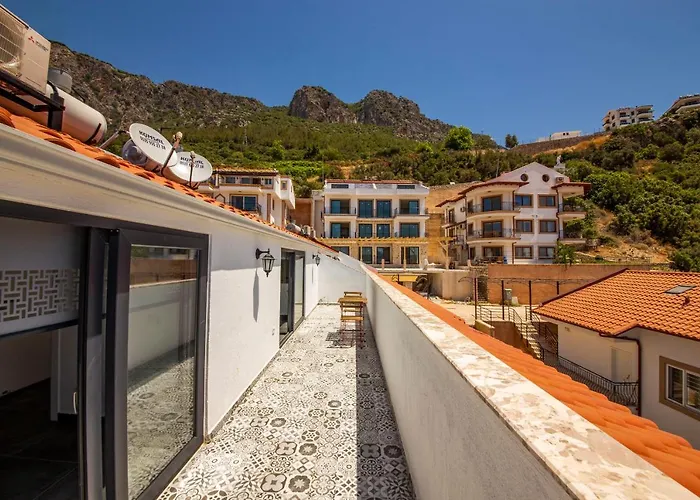 Weniger als 1 km vom Stadtzentrum von Kaş entfernt, bietet die 10-Zimmer-Ferienwohnung Granda Lambuka Apart Blick aufs Meer.